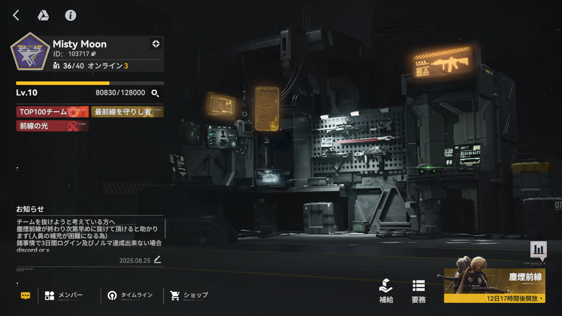 無微課金、無凸~完凸の様々なメンバーが在籍しているノルマはゆるめのまったりギルドです。前回の塵煙前線では全体2%以内(65位)で、チーム報酬をすべて獲得しました。完凸ルイス、リンド、秋樺、ヴォイ、クル...
