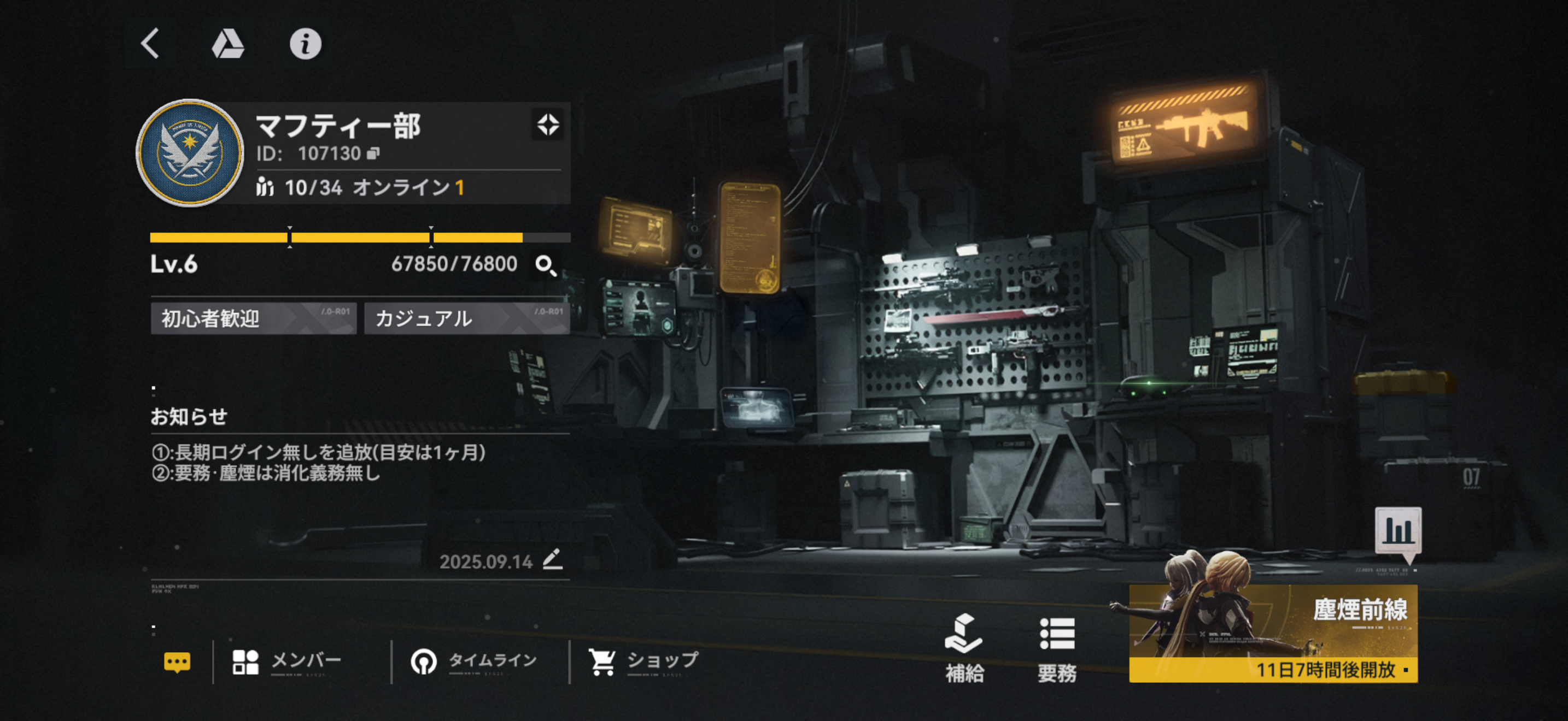 基本リアル優先で活動しています。(ゲーム内ノルマを課して、メンバーの私生活を圧迫したくないためそのようにしております。)Discordでは普段の4人で楽しく活動しています。ゆっくりまったり続けていきた...