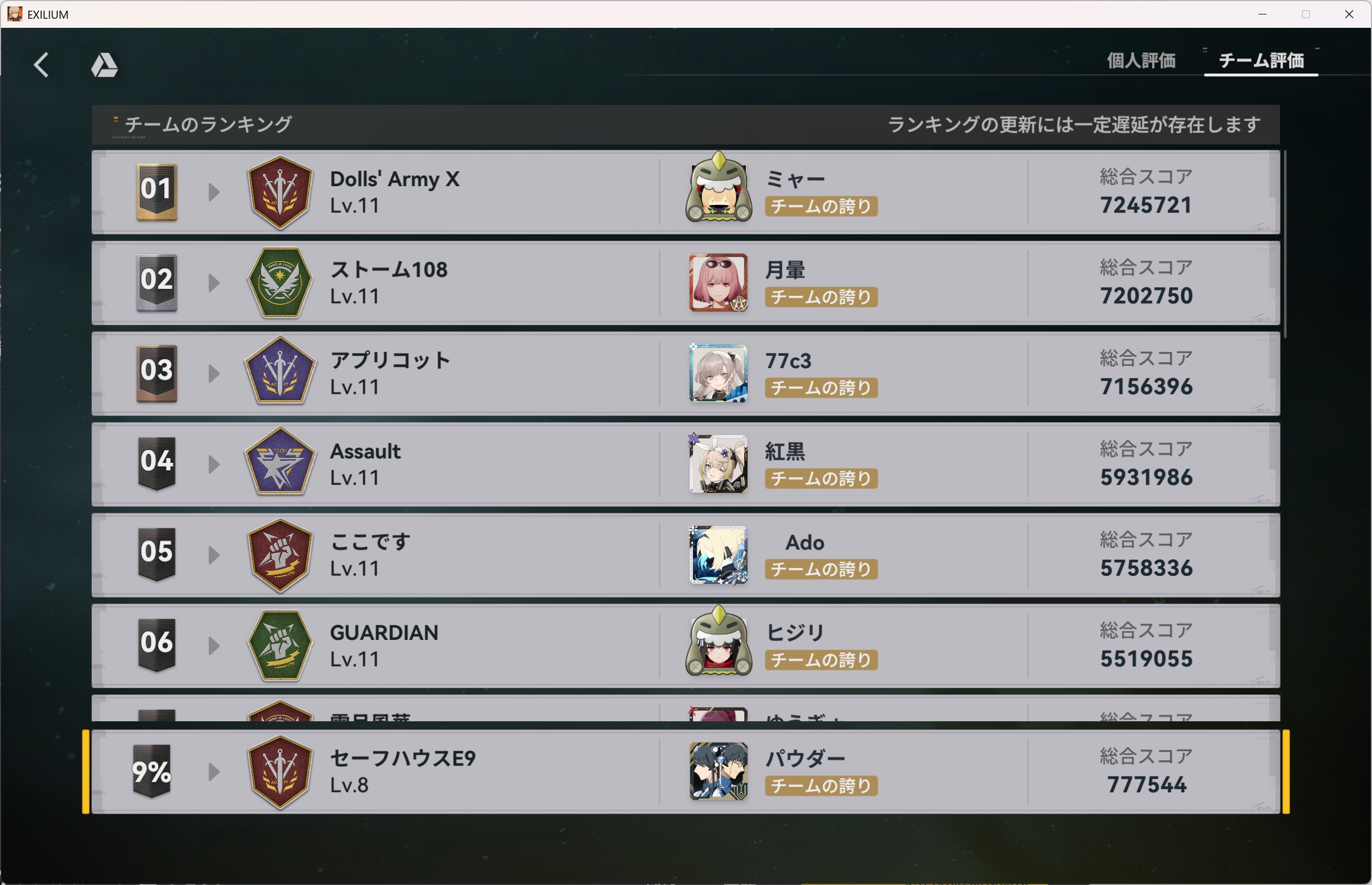 アクティブカジュアル前線作戦ベテランチーム最前線を守りし者前線の光TOP100チームゆるふわチーム