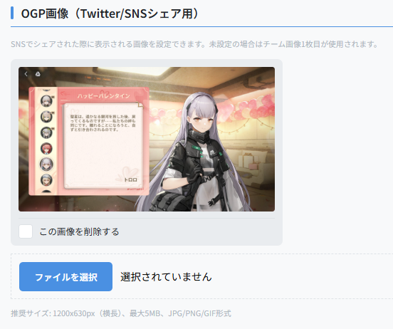 「マイページ>詳細画面」のOGP画像設定から、共有したい画像をアップロードしてください。
