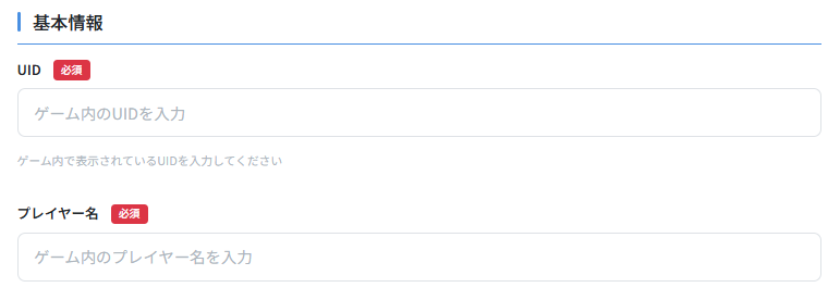 UID及びプレイヤー名のみが必須項目となっており、それ以外の情報は必要に応じて任意で入力してください。